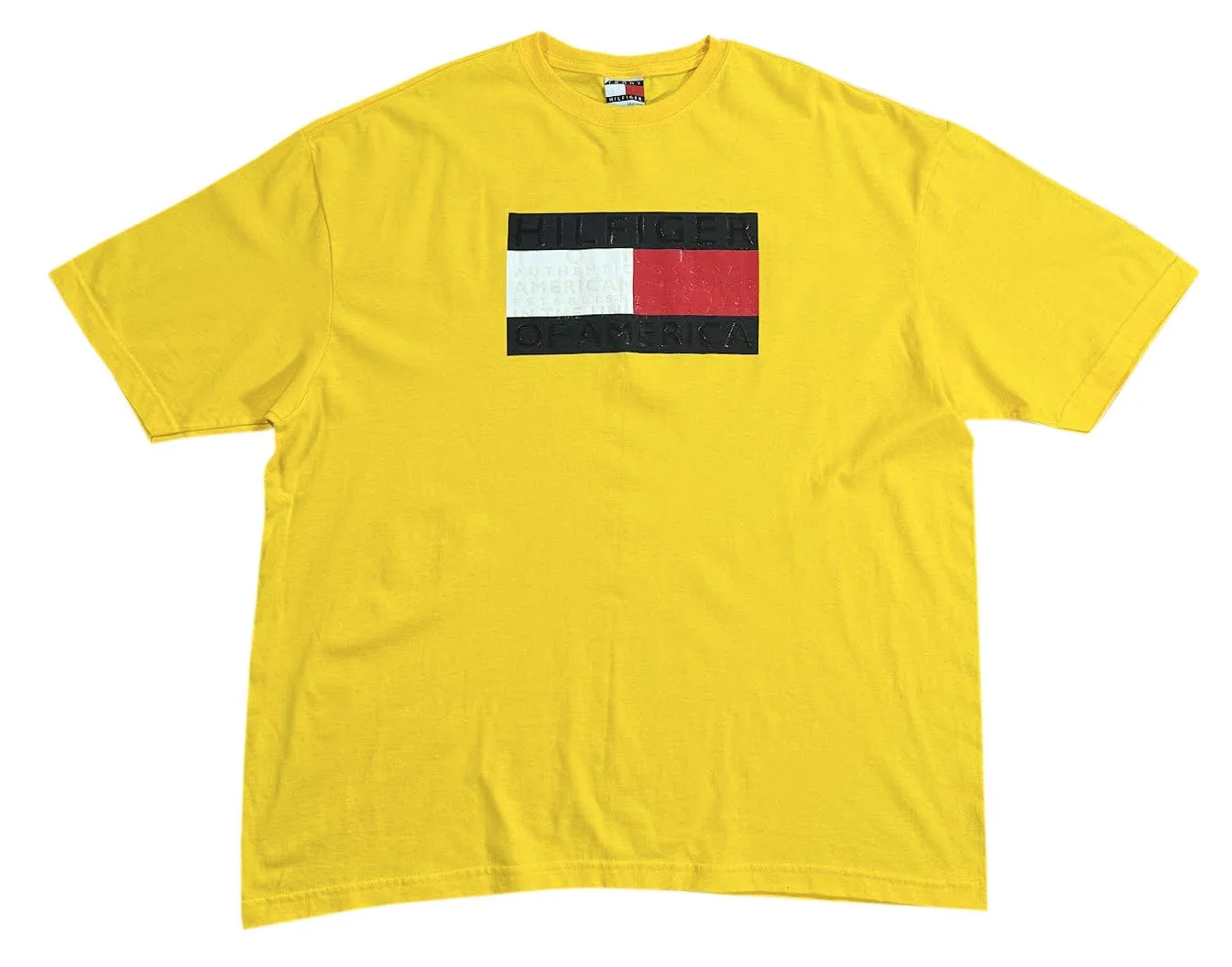 Vintage Tommy Hilfiger Yellow Logo T Shirt (Size XXL)